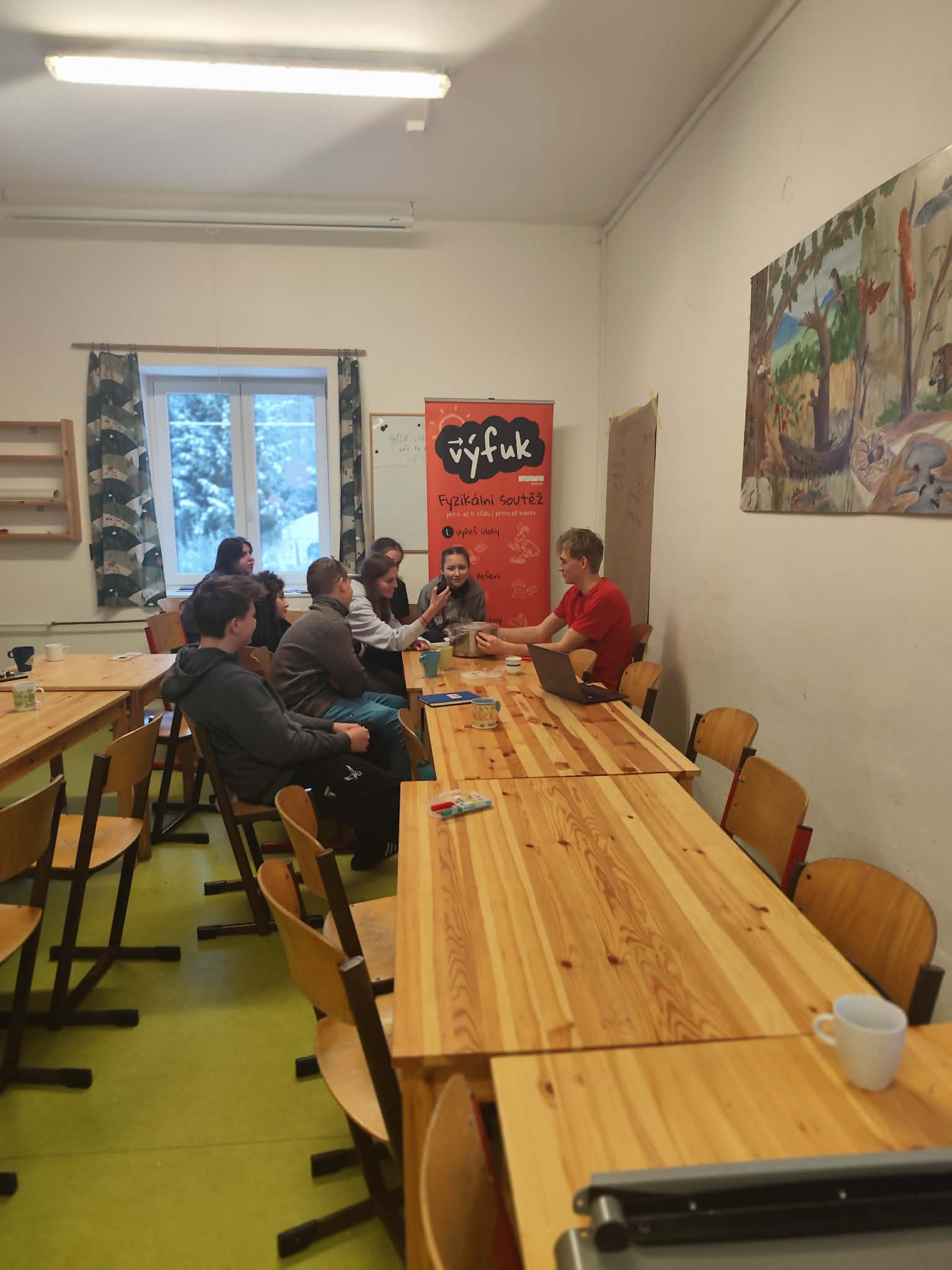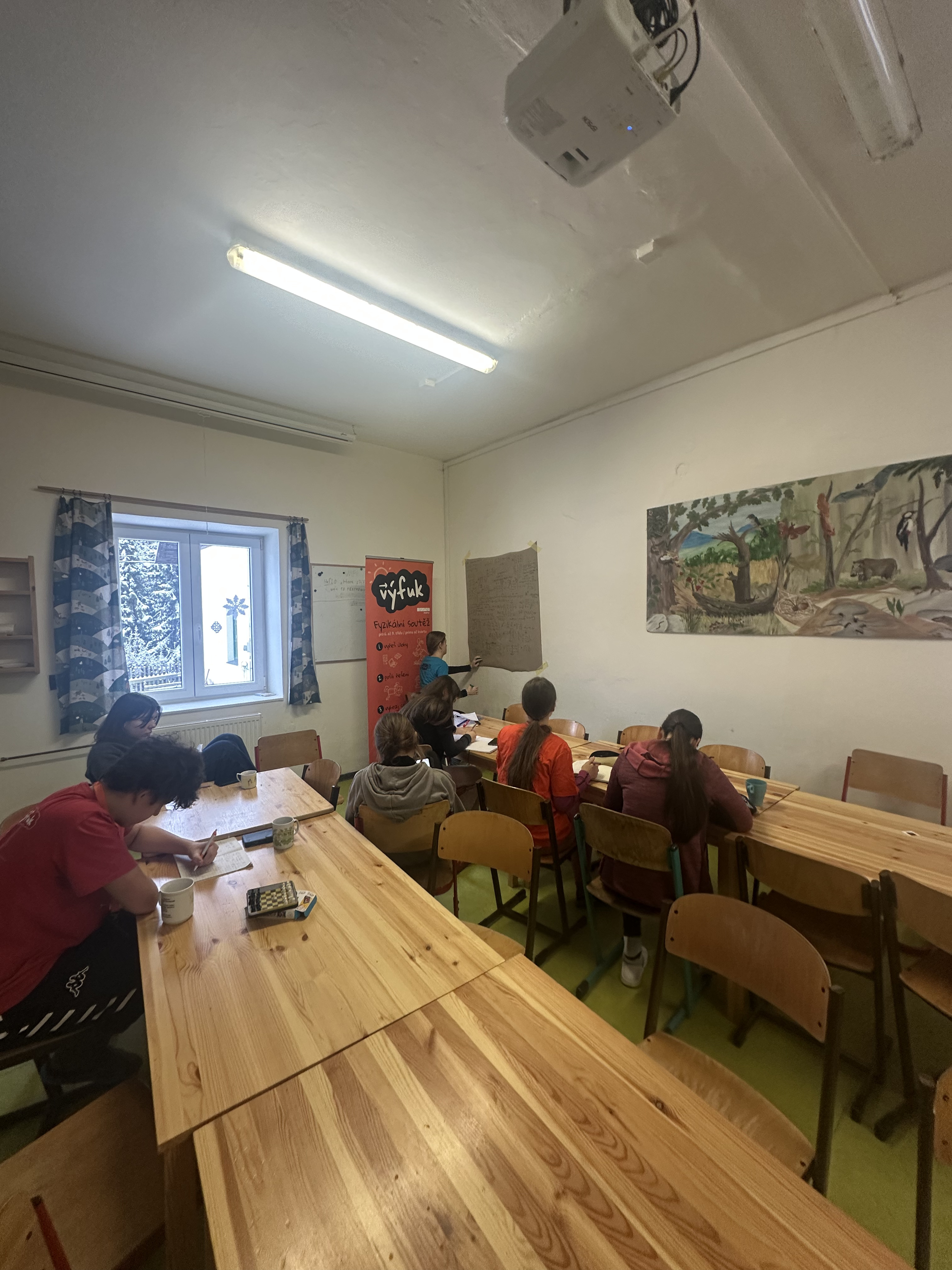 V průběhu roku 2024 jsme se shodli na tom, že bychom pro vás zkusili poprvé uspořádat akci nového typu, kterou jsme nazvali zimní víkendovka. Jak už název napovídá, cílem bylo vyrazit v zimě na víkend do nějaké malebné části České republiky a užívat si tam v komornějším počtu fyziku a zimní radovánky. První ročník se vydařil a do budoucna je v plánu zimní víkendovku v podobném termínu každoročně opakovat.